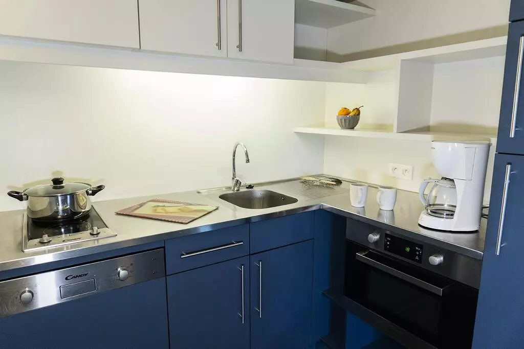 L'équipement comprend 2 plaques électriques, un réfrigérateur, un four multi-fonctions, un lave-vaisselle, une cafetière électrique et une télévision écran plat.