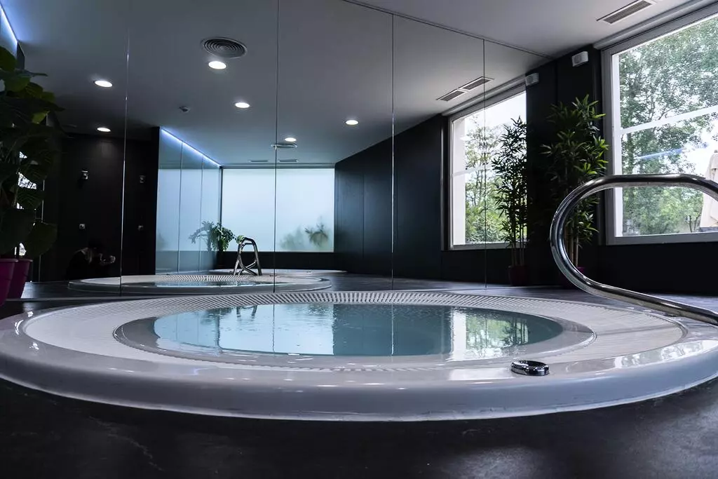 espace détente avec 2 bains à remous, hammam, sauna et solarium