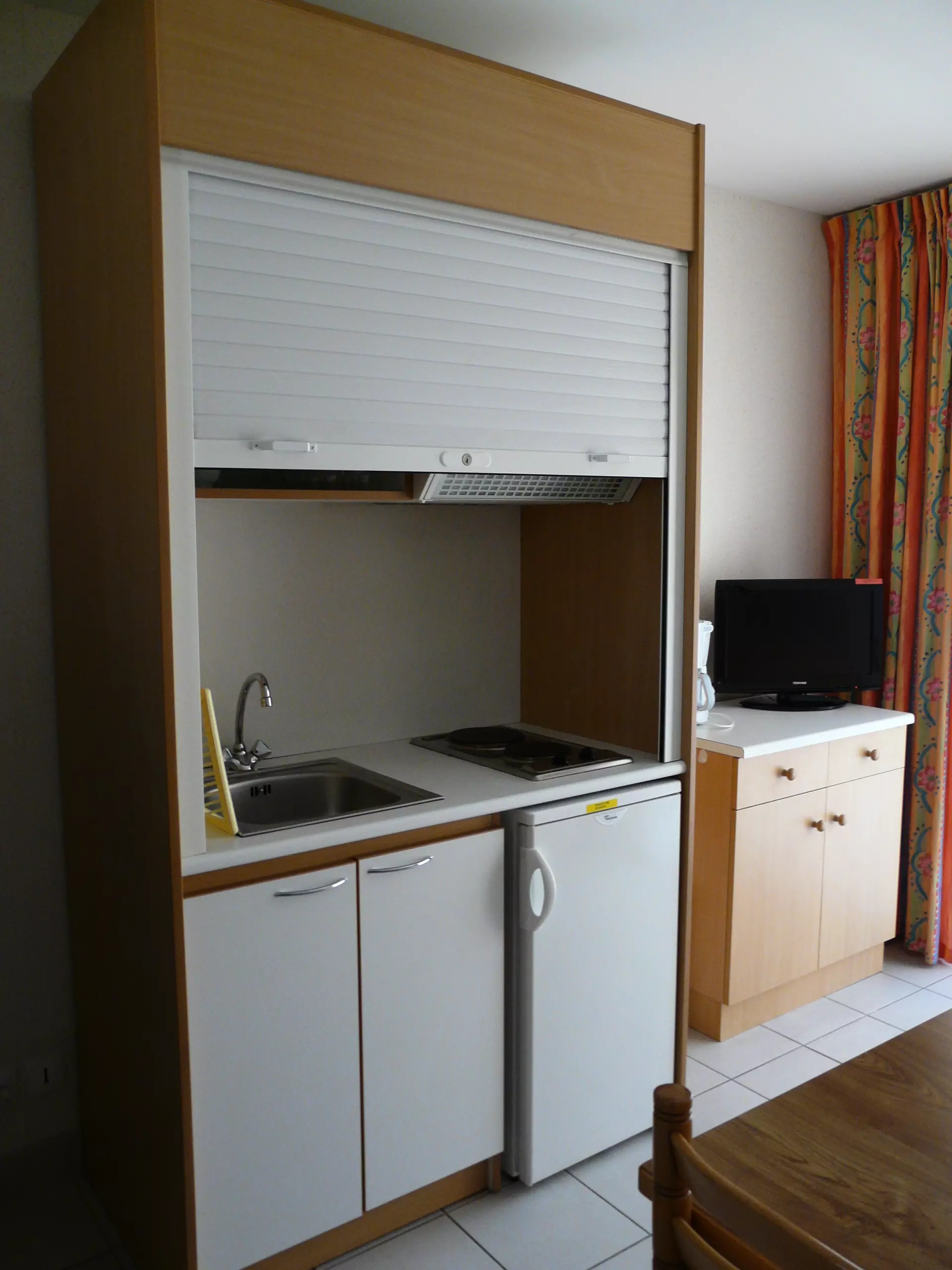 Le logement est équipé d'une télévision, de plaques de cuisson électriques, d'un four micro-ondes, d'un réfrigérateur, d'une cafetière électrique, d'une bouilloire, d'un grille pain et de mobilier de jardin sur la terrasse.