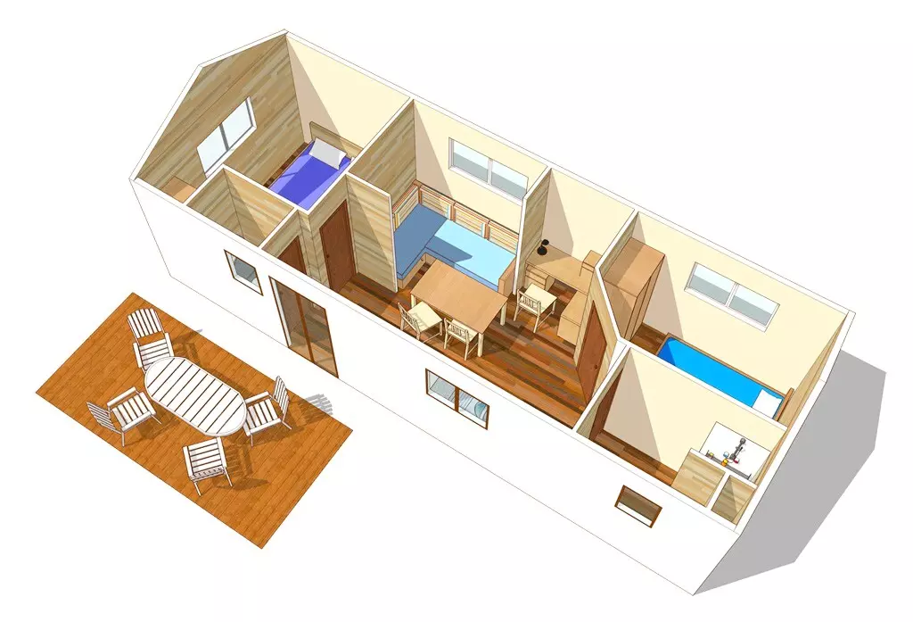 A noter : Dans certains modèles, selon les campings-villages, la chambre "enfants" propose 3 lits simples.