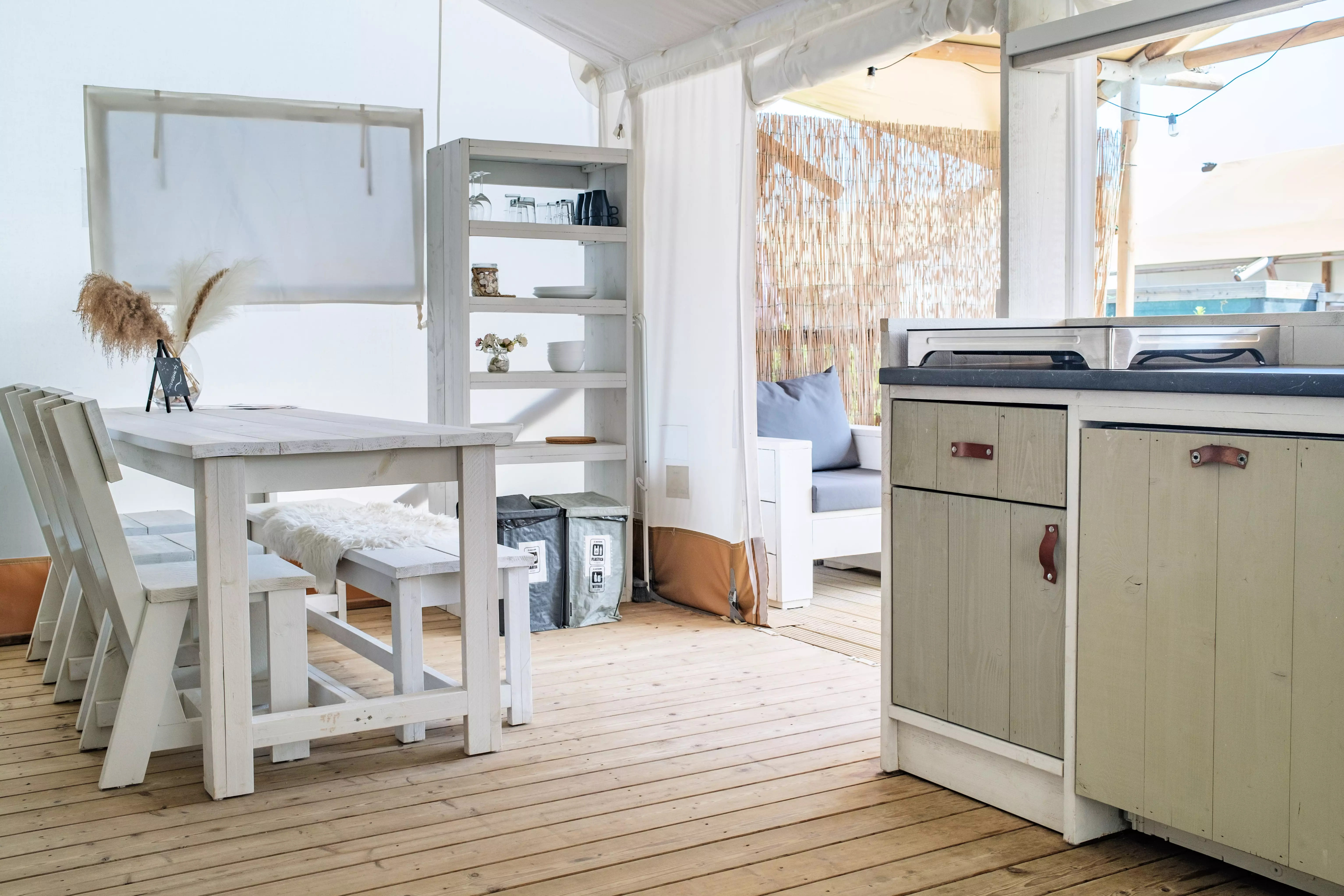 Juste un autre matin au camping Villa Alwin Beach Resort. Les premiers rayons du soleil filtrent à travers les arbres sur le toit de votre tente. Vous vous levez, vous dirigez pieds nus vers la véranda et vous étirez. Alors que vous vous appuyez sur la balustrade, les vagues caressent doucement la plage. Les enfants dorment encore et l'odeur de cappuccino frais rend votre rituel matinal complet. "Café, chéri ?"