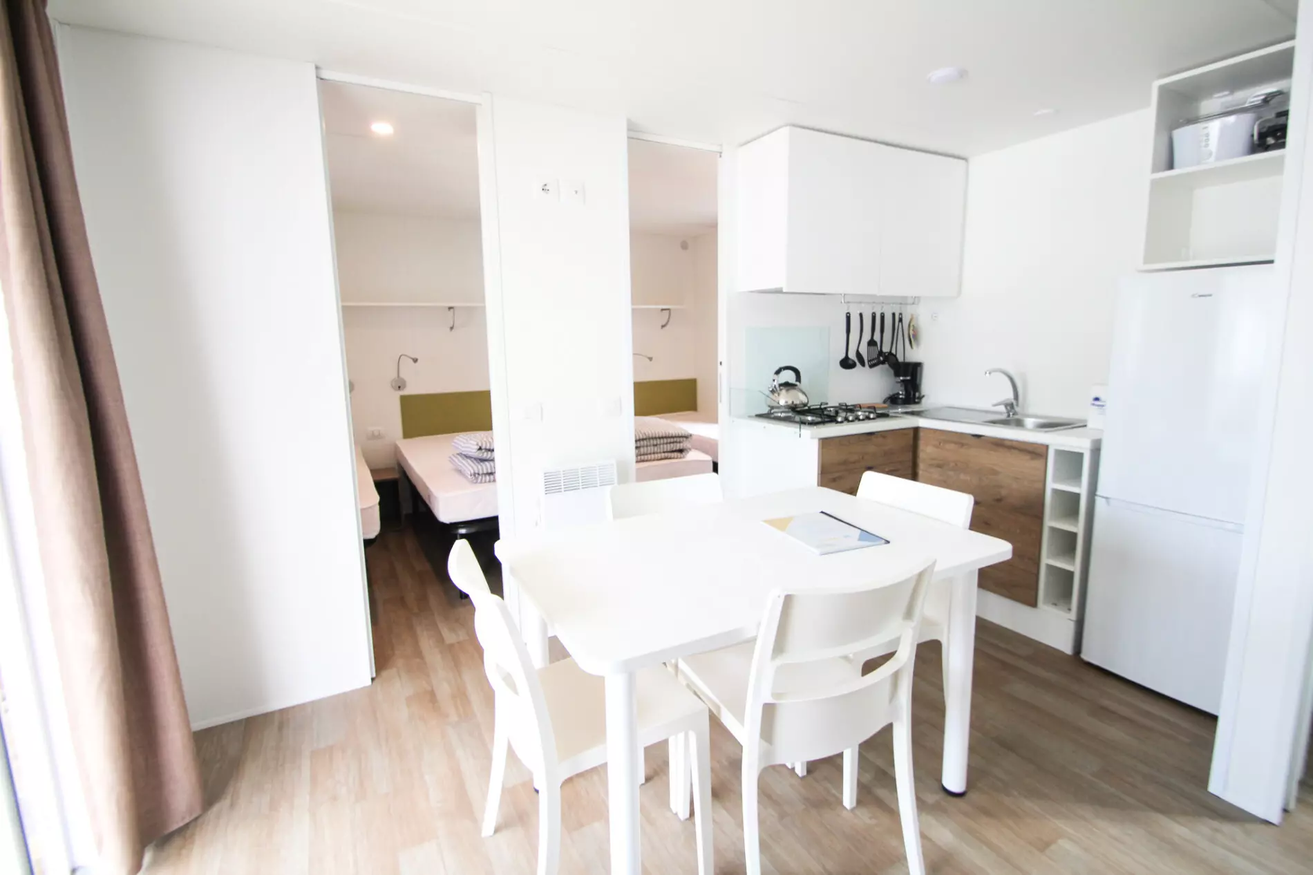 A noter : ce mobil home dispose de 5 couchages mais n'est réservable que pour 4 personnes maximum.