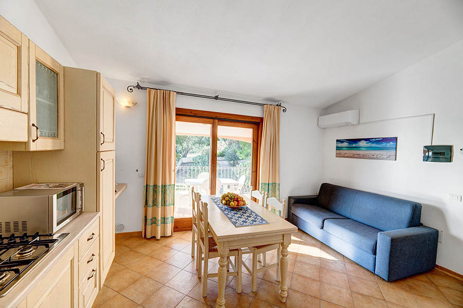 Autour d'un petit jartin méditerranéen, chaque "Appartement pour 4 personnes", d'une superficie de 44 m² est pensé pour allier confort et simplicité dans un cadre méditerranéen verdoyant : un séjour lumineux avec canapé-lit double, une chambre séparée avec un lit double, un coin cuisine équipé ouvert sur le séjour, une salle de douche et un WC, ainsi qu'une terrasse ou un balcon.