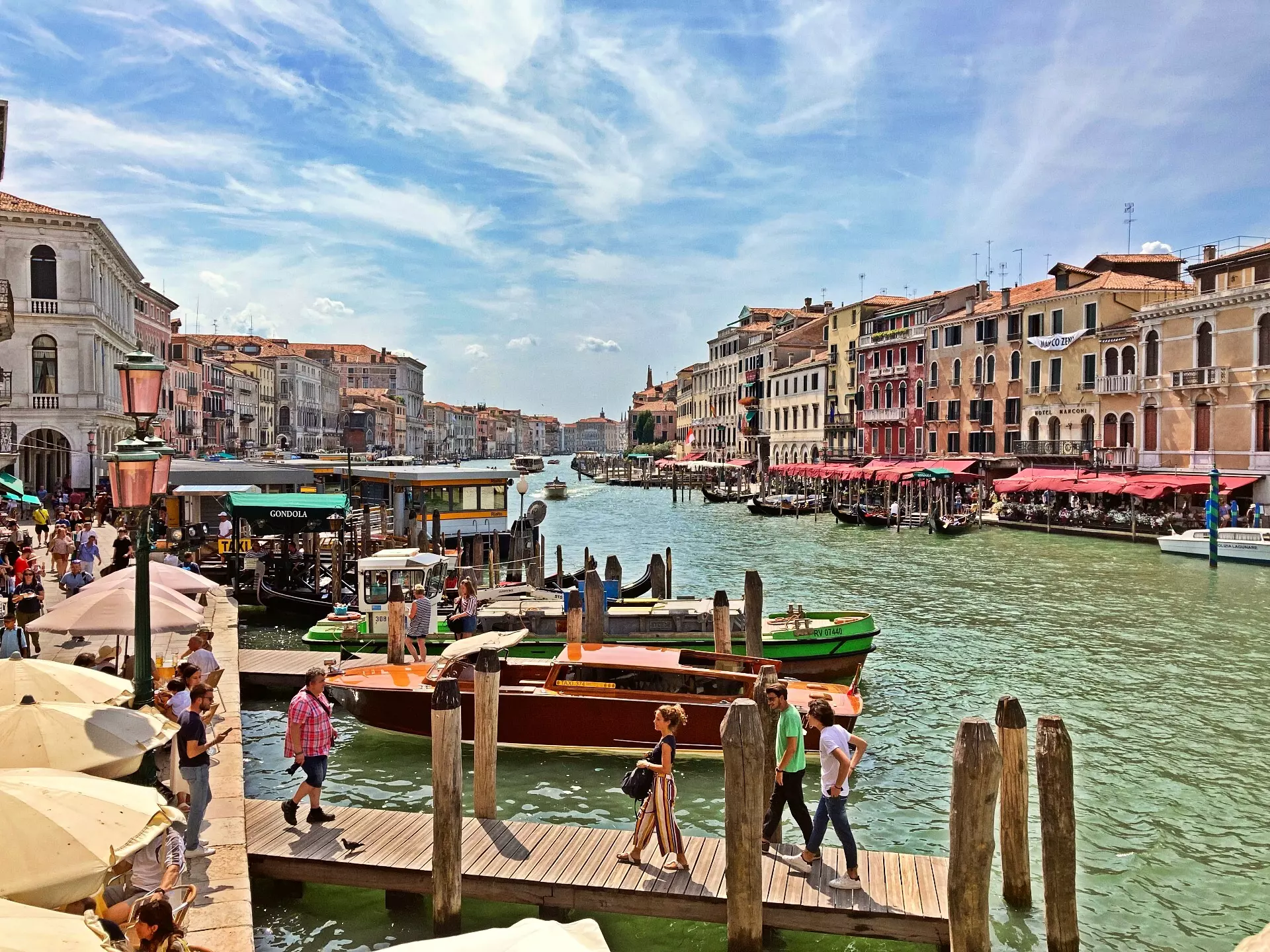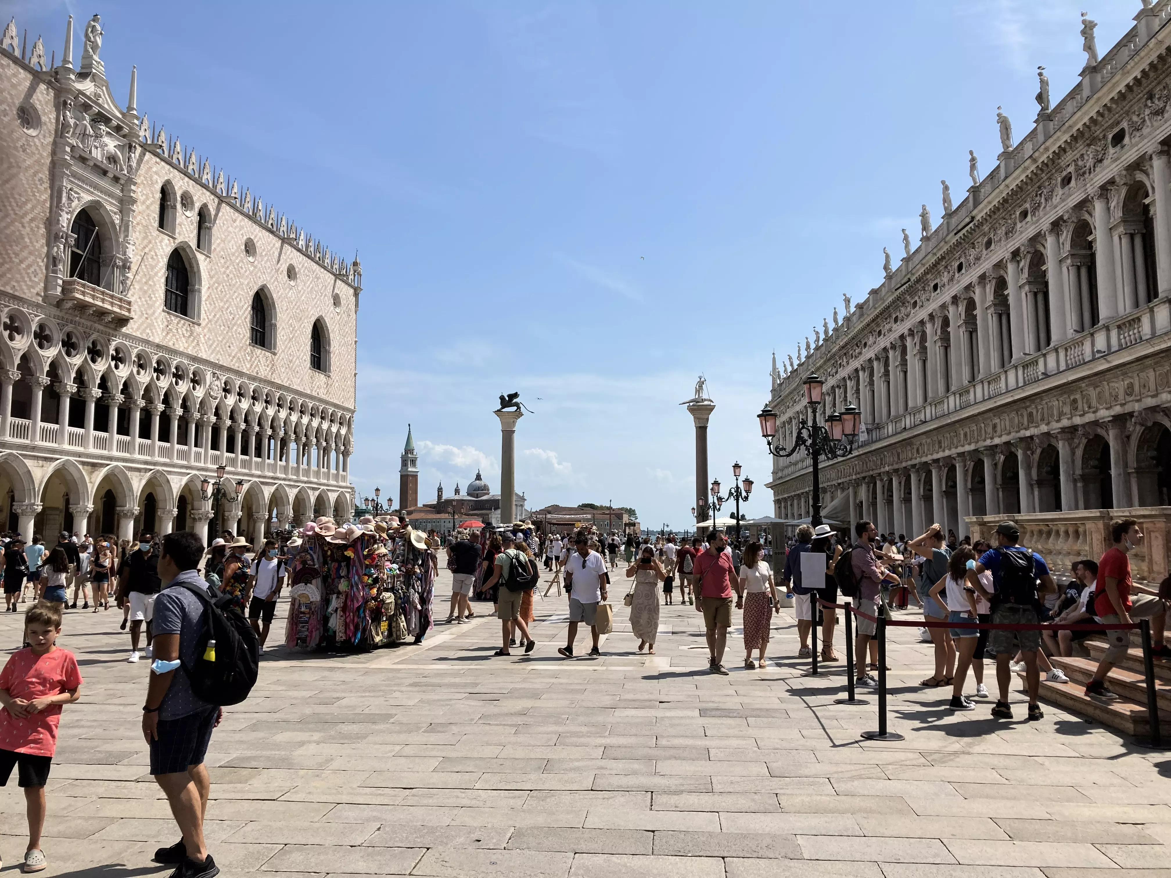 À l'arrière-plan, dans tout son charme, le profil élégant de Venise.