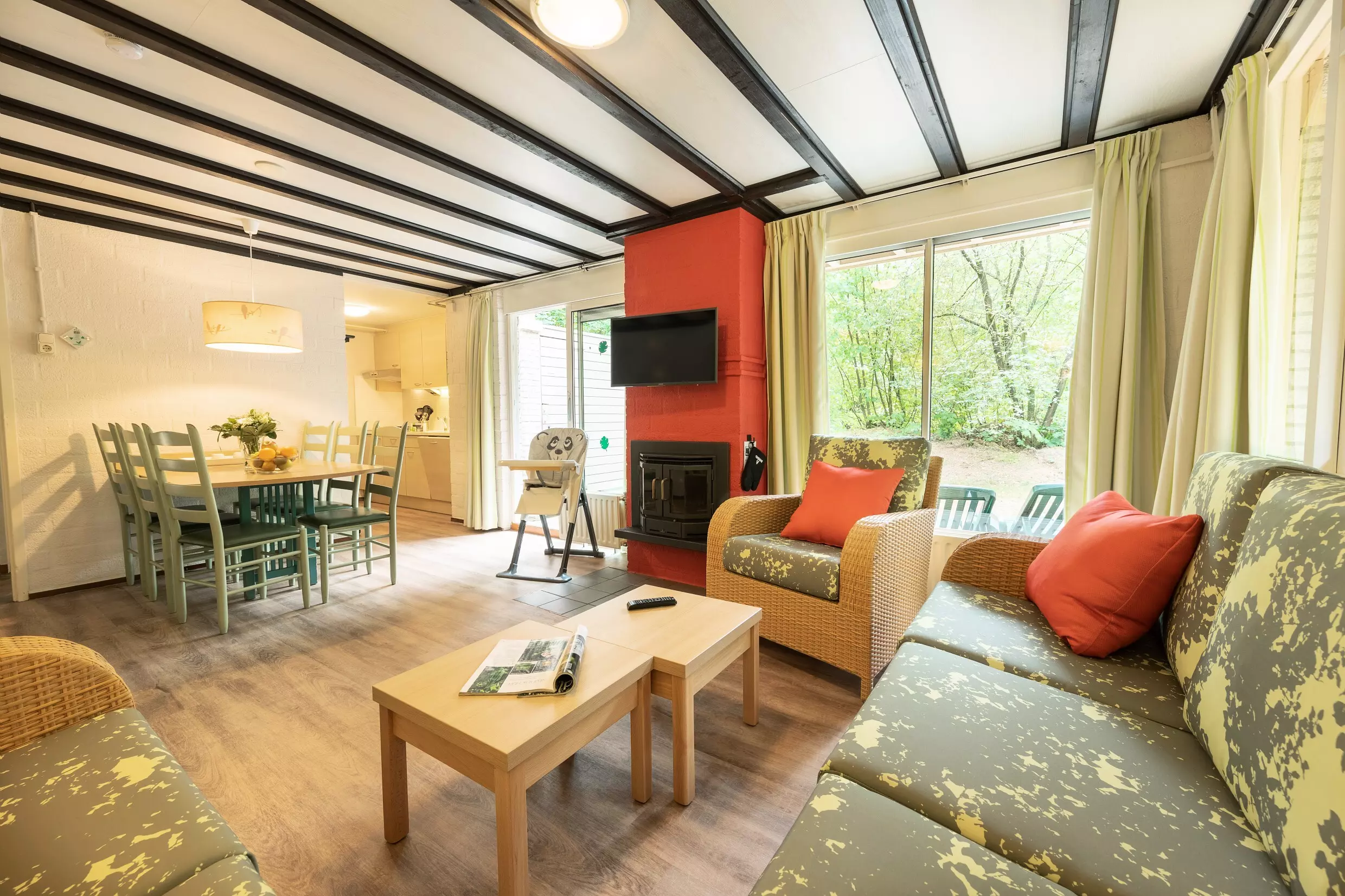 Le cottage est équipé d'une cheminée, d'une télévision, d'un lave-vaisselle, d'une bouilloire, d'un grille pain, d'un micro-ondes combiné, d'une cafetière + d'une Nescafé Dolce Gusto et de mobilier de jardin sur la terrasse.