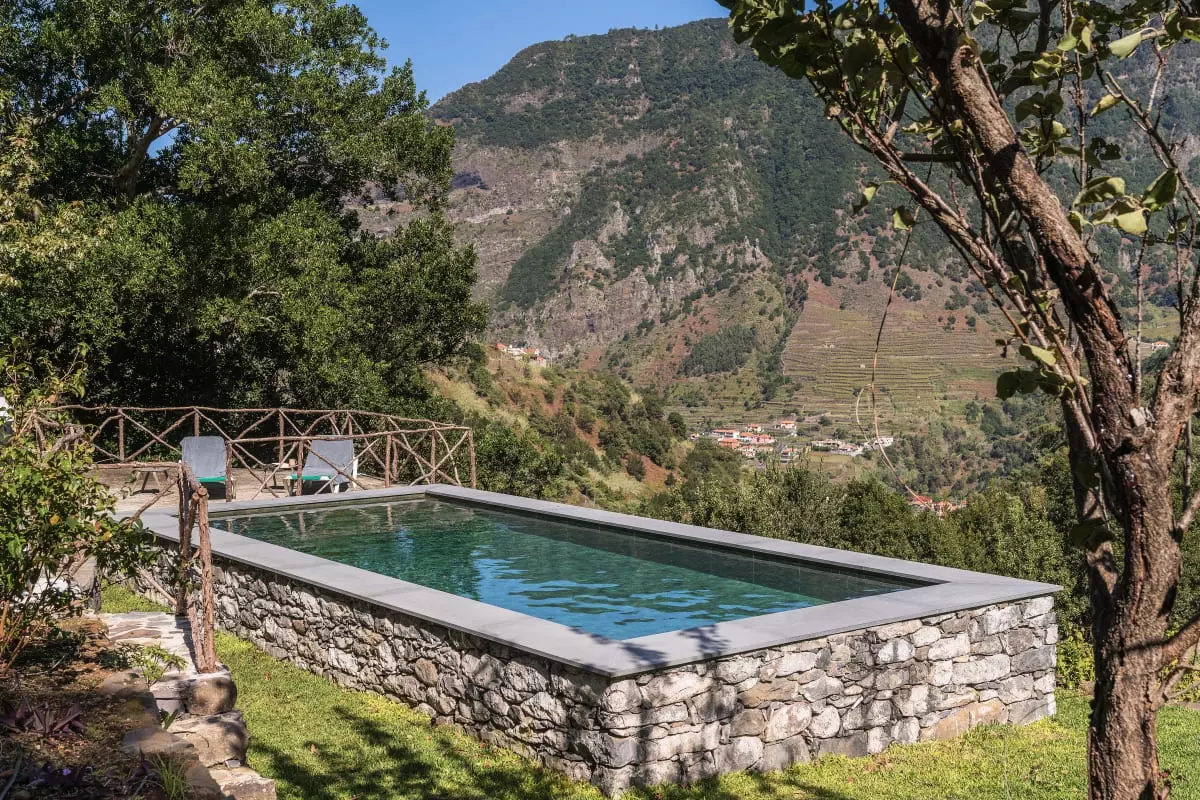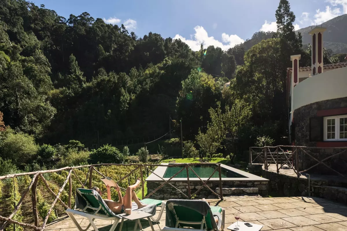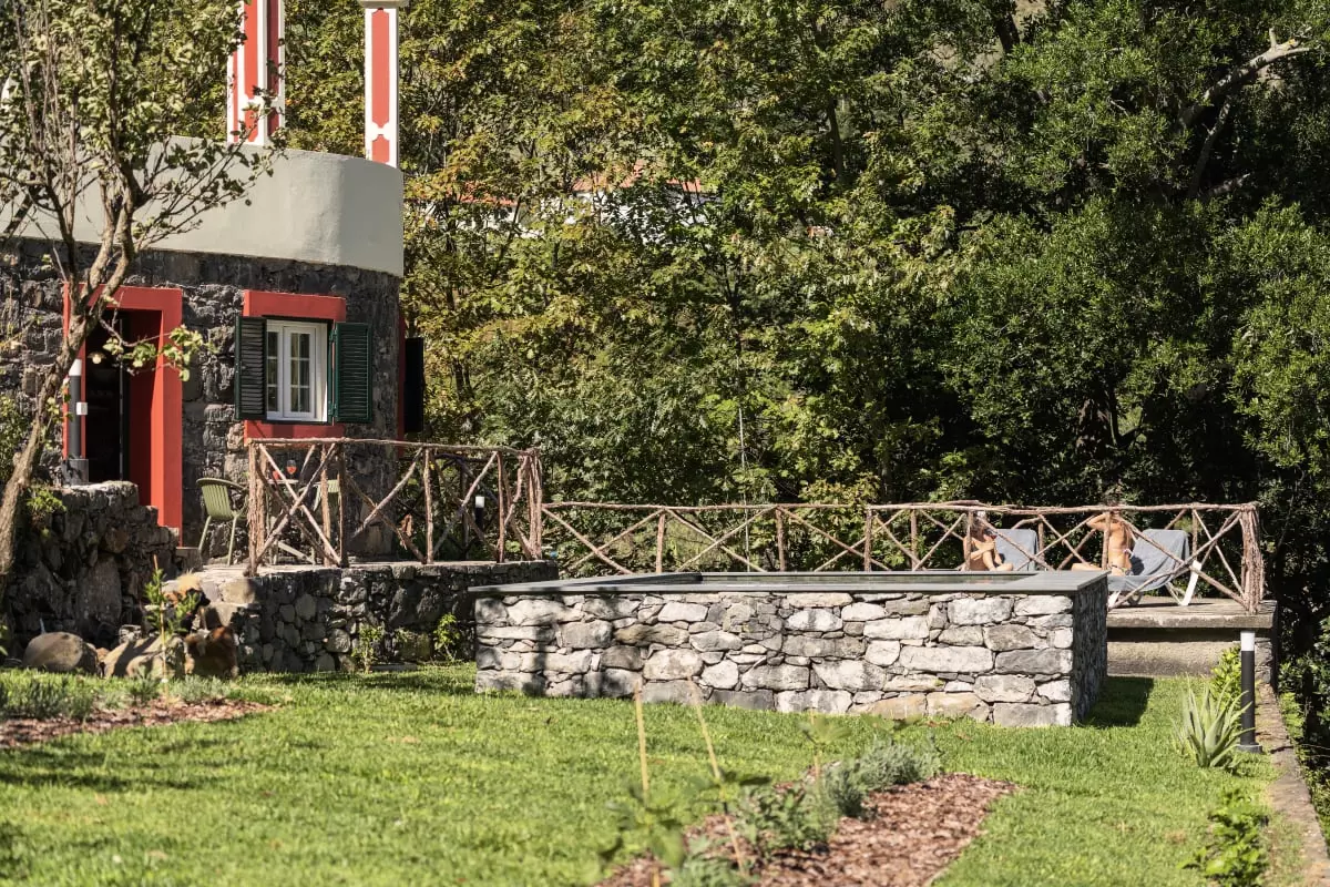 La propriété fait partie d'un groupe de maisons où vous trouverez une piscine commune et plusieurs jardins avec des arbres centenaires, dont un grand chêne de plus de 250 ans et plusieurs espèces endémiques de la Laurissilva comme les its, les vinháticos, les barbusanos et les loureiros.