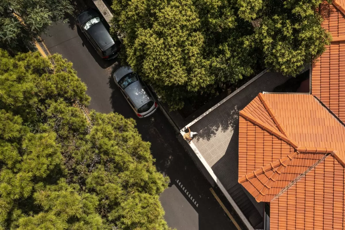 La cour située en dessous et l'accès à l'arrière sont partagés par les deux appartements. Avec une table et des chaises, cet espace peut être un refuge tranquille pour se détendre à la fraîche ou être utilisé pour recevoir la famille et les invités. Un barbecue traditionnel en pierre volcanique avec feu de bois, une machine à laver et un sèche-linge dissimulés se trouvent également dans le patio et donnent accès au garage commun en sous-sol qui offre un parking privé et sécurisé au centre de la ville.
