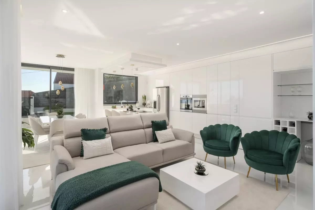 En entrant dans la villa, un salon spacieux, décoré de façon moderne et confortable, vous accueille. Il y a trois chambres élégantes, chacune avec un lit double, et deux salles de bains avec douche. La cuisine entièrement équipée vous permet de préparer de délicieux repas à déguster dans la salle à manger attenante, qui donne sur le jardin.