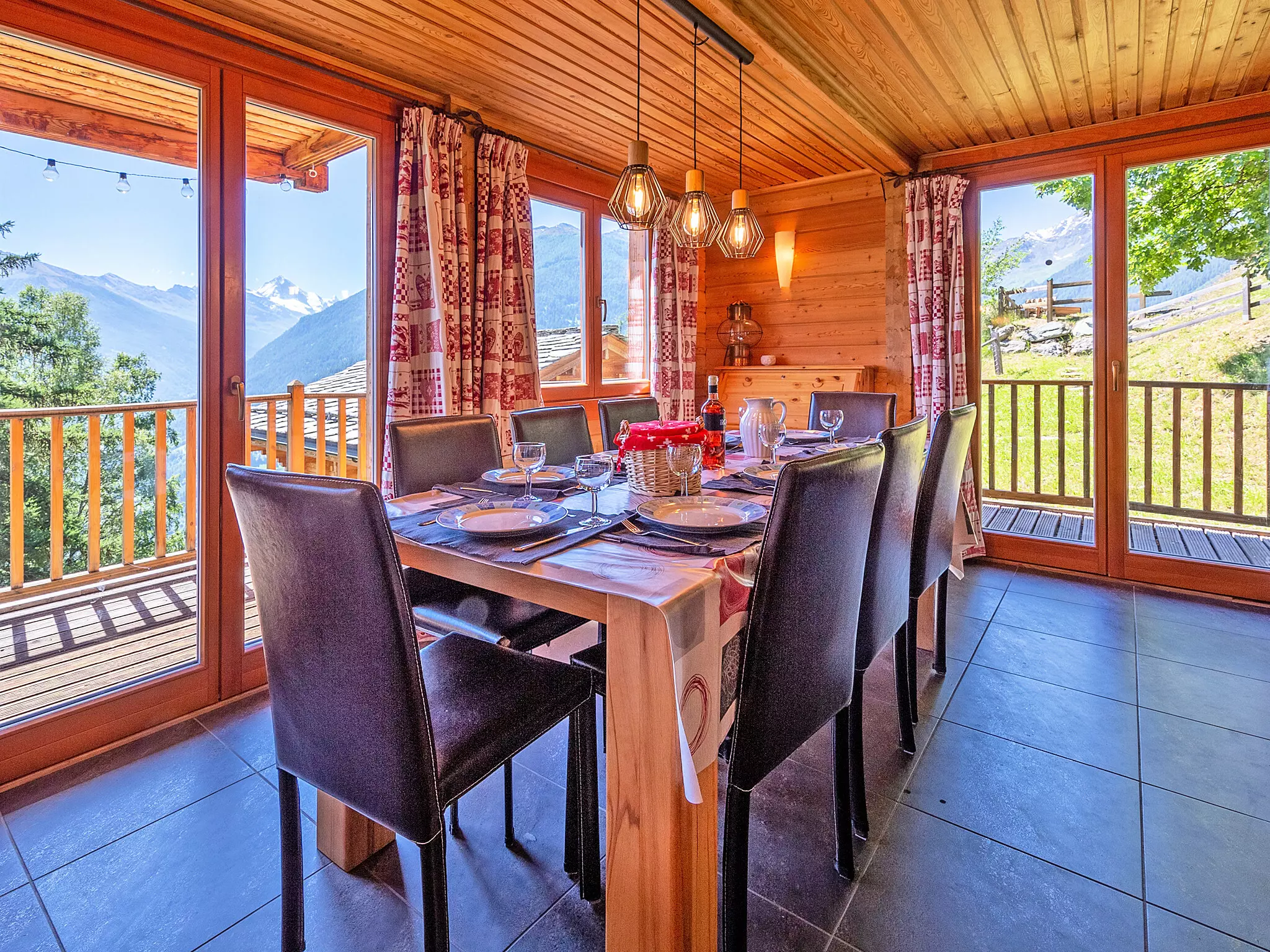La cuisine ouverte est moderne et entièrement équipée. Il y a quatre chambres à coucher ; l'une dispose d'une salle de bain en suite. Les balcons ainsi que la terrasse spacieuse offrent une vue spectaculaire sur le Val d'Herens et sur les sommets valaisans de 4000 mètres comme celui de la Dent Blanche. Un parking privé est disponible à environ 10 mètres.