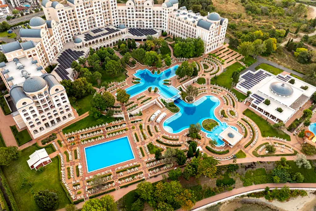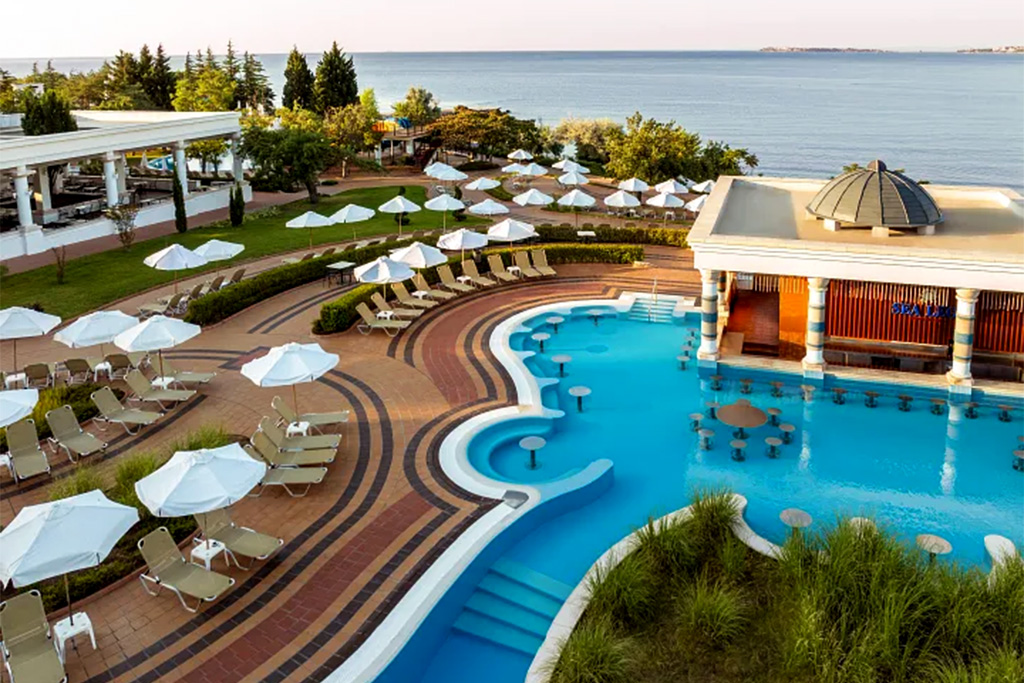 Bienvenue au Dreams Sunny Beach Resort & Spa 5* by Ôvoyages ! Découvrez une adresse moderne et élégante posée au cœur de l'une des stations balnéaires les plus prisées de la mer Noire. Situé à Sunny Beach, ce « resort » haut de gamme offre un cadre idéal pour des vacances mêlant détente, loisirs et plaisirs balnéaires, le tout dans une atmosphère chaleureuse propre à la côte bulgare. Entouré de jardins soignés et à quelques pas d'une longue plage de sable doré, l'établissement séduit par ses vastes espaces, son design contemporain et son large choix d'activités pour petits et grands. Chambres lumineuses, piscines scintillantes, restaurants variés, clubs pour enfants et espace Spa et bien-être : chaque détail est pensé pour offrir un séjour relaxant et confortable, en couple comme en famille. Entre farniente face à la mer, animations conviviales et moments de bien-être, cet hôtel promet une escapade ensoleillée où tout est réuni pour des vacances inoubliables.