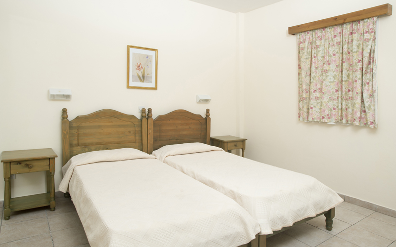 76 studios et appartements répartis dans des résidences d'un à deux étages disposant d'une salle de bains avec douche, sèche-cheveux (sur demande à la réception), air conditionné, TV, Wi-Fi. Grand lit double ou 2 lits simples. 3e et 4e personne en canapé lit double. Balcon ou patio.