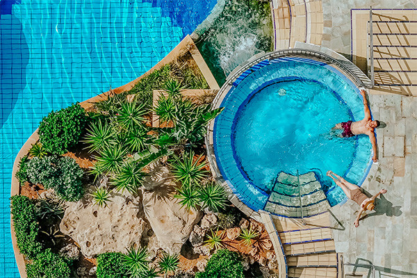 • Mini suite avec bain à remous vue mer (32 m²) : terrasse avec bain à remous, chaises longues et parasols, salle de bain avec douche à l'italienne. Capacité maximum : 3 adultes.