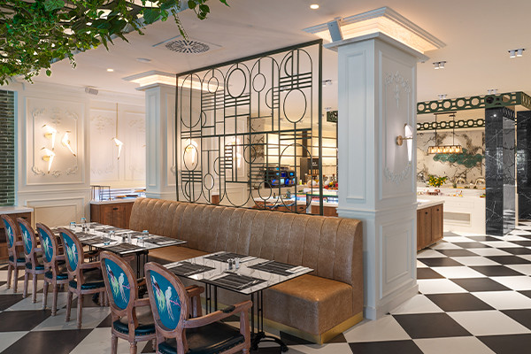 L'hôtel dispose de 4 restaurants, de 2 bars; d'un glacier d'une pâtisserie :