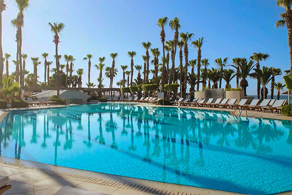 Le Leonardo Grand Resort est situé sur le côte sud de l'île, près de Limassol. Il se distingue par son élégance contemporaine, ses jardins tropicaux, ses piscines intérieures et extérieures, ainsi que ses nombreuses installations de bien-être, de restauration et de loisirs, offrant ainsi une expérience de séjour raffinée et relaxante pour les voyageurs en quête de confort et de sérénité.