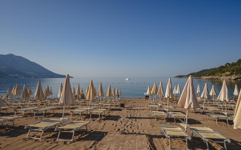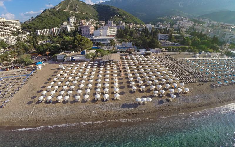Plage de sable et de galets à environ 150 m (chaises longues et parasols avec supplément).