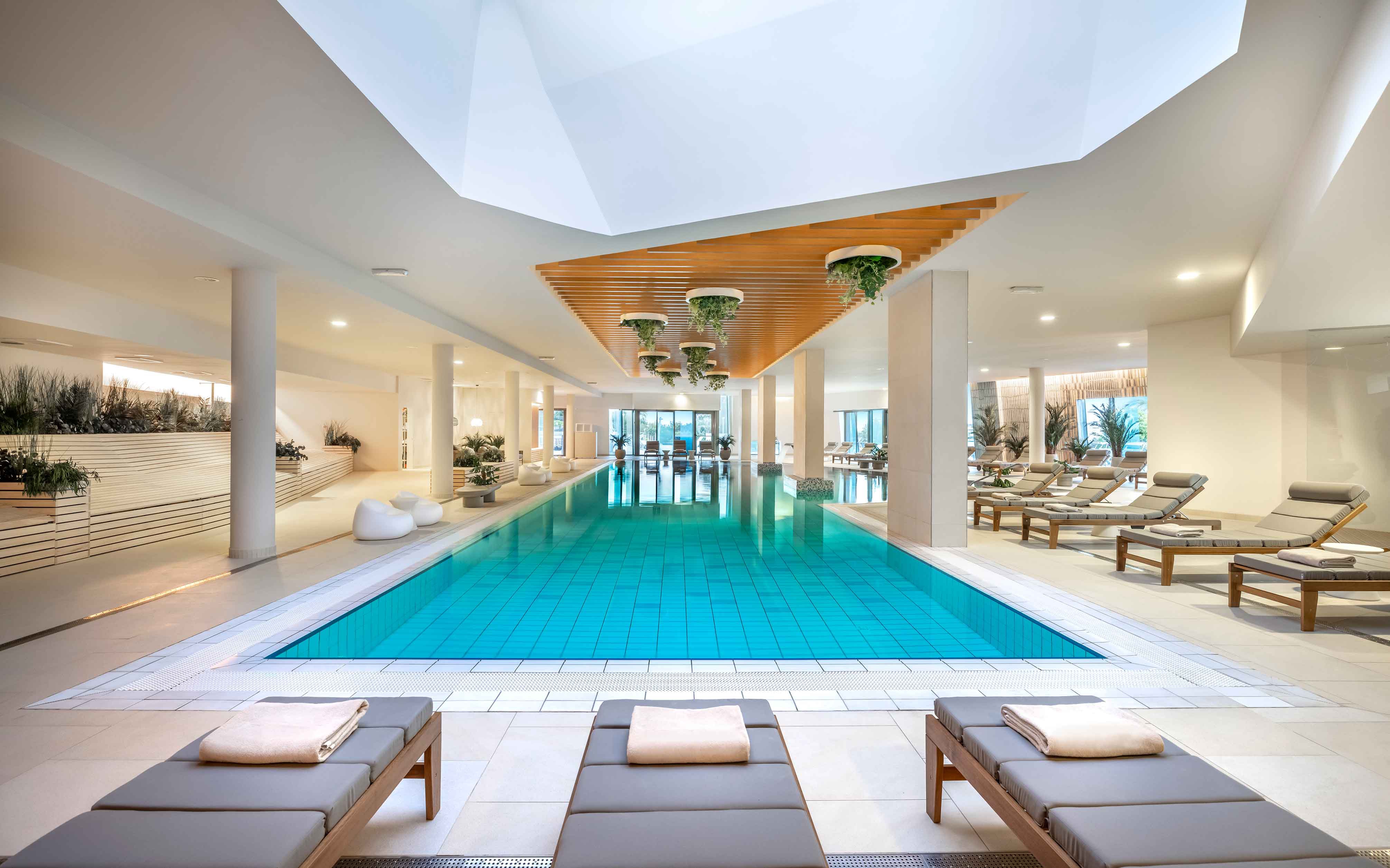 1 Piscine d'eau douce, piscine pour enfants, avec chaises longues et parasols gratuits à la piscine, service de serviettes gratuit, piscine couverte, centre de bien-être avec saunas, bain de vapeur, fitness.
