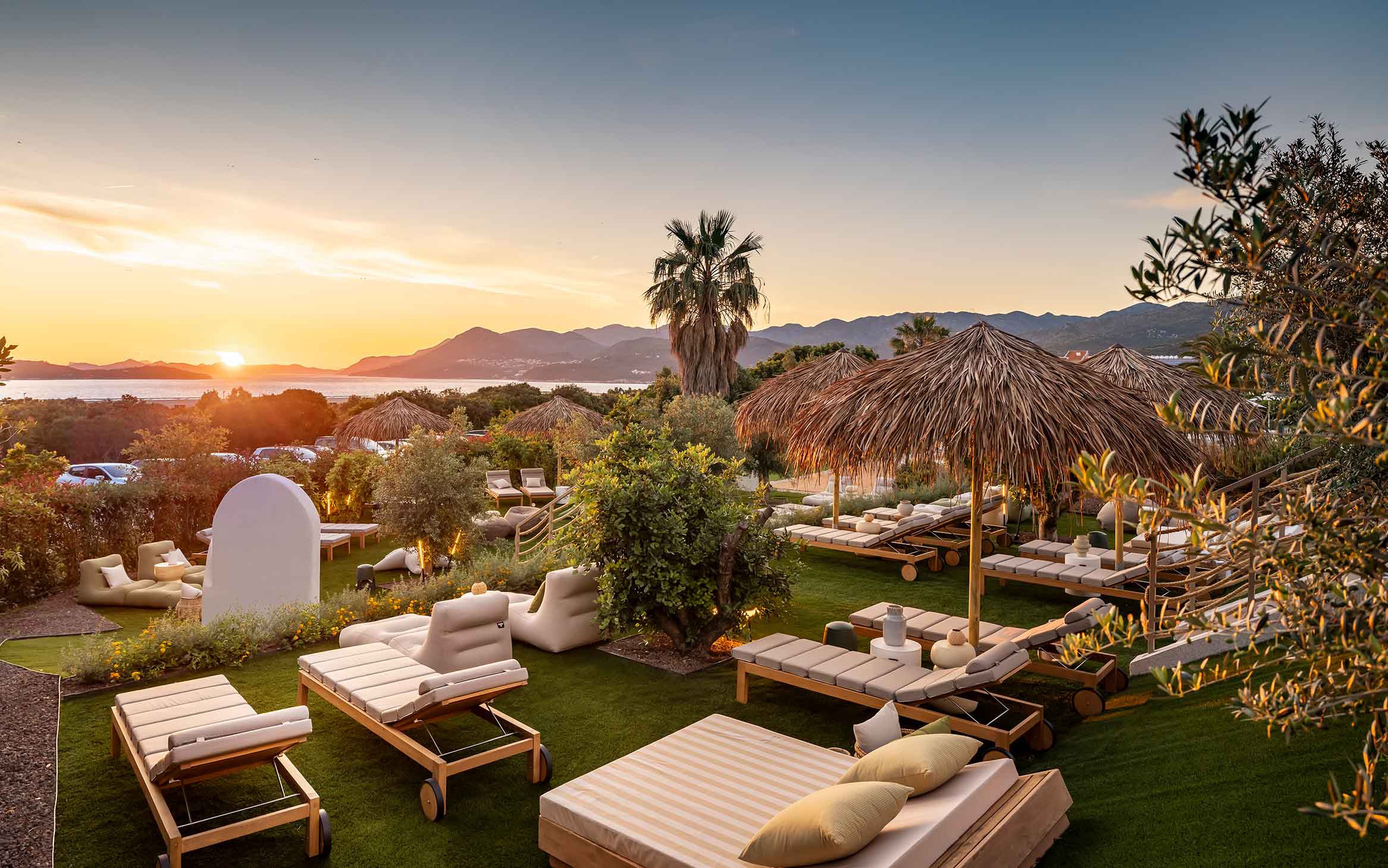 réduction sur les chaises longues et parasols à la plage relax du Valamar Dubrovnik President.