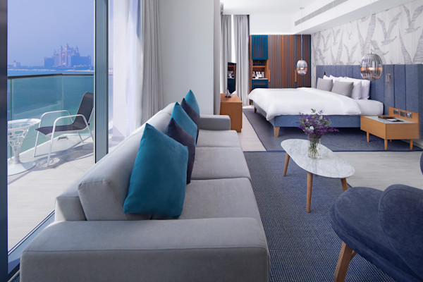 Le complexe hôtelier dispose de 203 chambres dans un bâtiment de 8 étages (avec ascenseurs). Les chambres et des suites de luxe sont dotées d'une décoration contemporaine, d'oeuvres d'art murales spectaculaires, d'écrans plats et de balcons en verre offrant une vue sur l'océan et Palm Jumeirah.