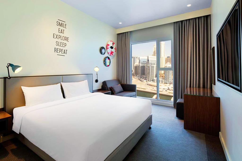 Rove Dubai Marina 3* compte 384 chambres modernes réparties sur 16 étages. Les chambres, à l'ambiance « funky », spacieuses et lumineuses offrent un design original et innovant.