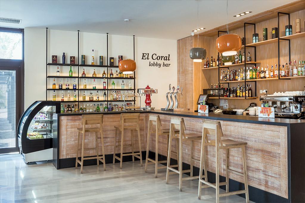 Le lobby-bar « Al Coral » vous invite à découvrir la carte de snacks, boissons gazeuses, salades, et cocktails.