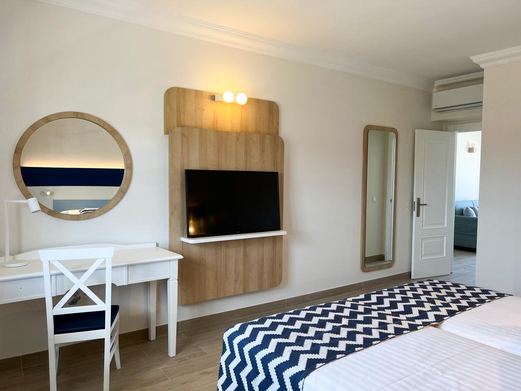 2 chambres avec deux lits simples (90*200cm) dans chacune, climatisation, TV satellite et coffre-fort (payant).