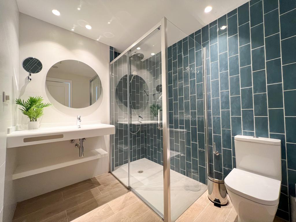 La salle de bains est équipée d'une douche et d'un sèche-cheveux.