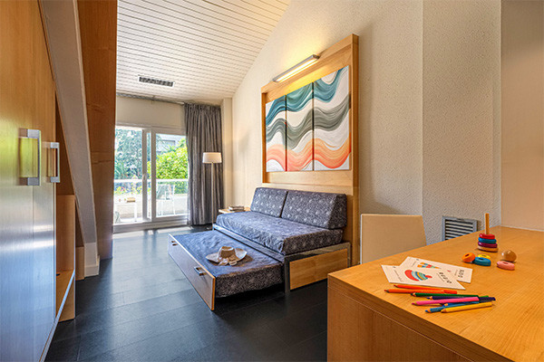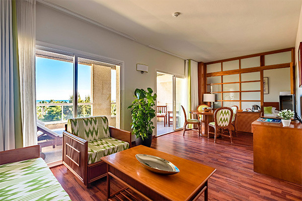 • Suite standard (41 m²) : salon séparé avec canapé-lit double, machine à café, terrasse ou balcon aménagé de 11.90 m². Capacité maximum : 4 adultes ou 2 adultes + 2 enfants.