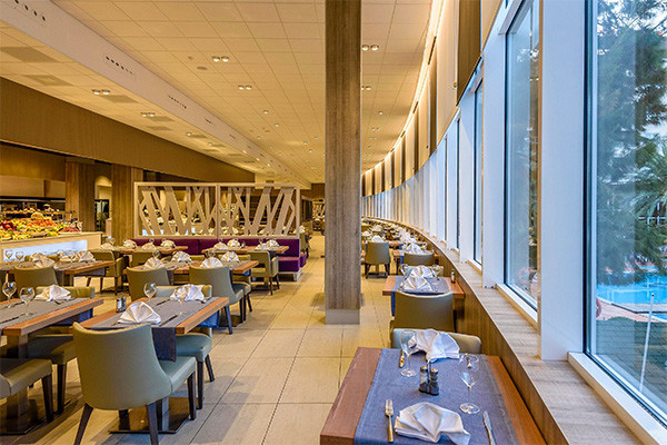 • De la pension complète (petit-déjeuner, déjeuner et dîner) servie sous forme de buffet au restaurant principal.