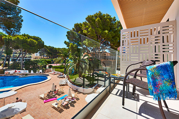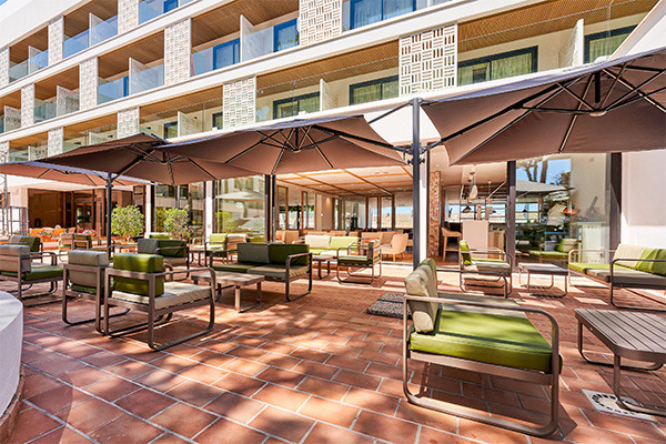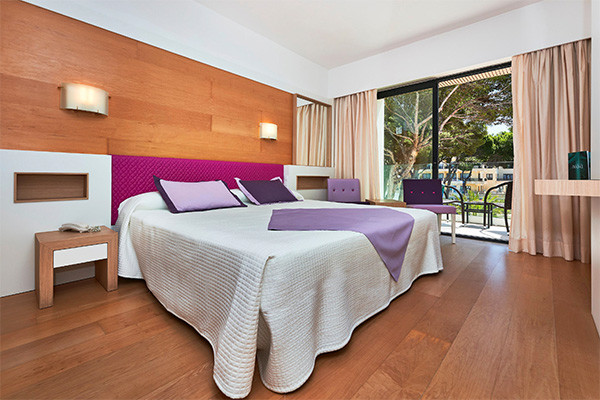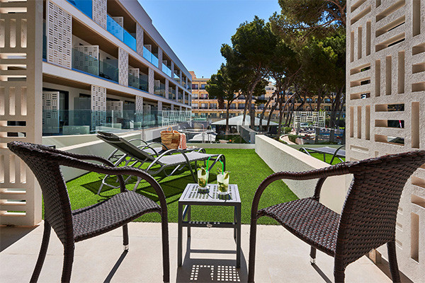 • Chambre double sélection (36 m²) : plus spacieuse, avec une terrasse aménagée de chaises longues, chaises et tables.