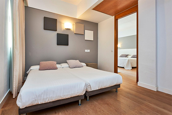 • Chambre familiale (48 m²) : plus spacieuse, salon séparé avec canapé-lit.
