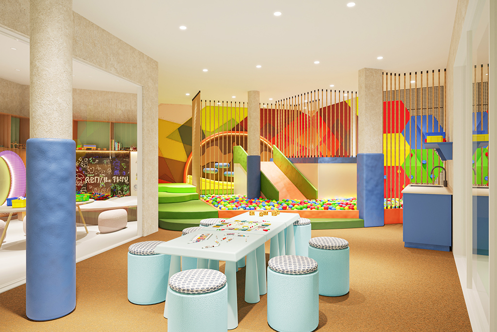 La Suite Premium Kid dispose des mêmes équipements que la Junior Suite Terrasse avec un espace salon et console de jeux.