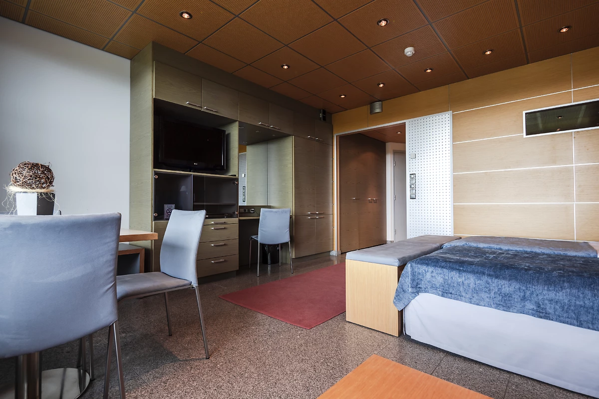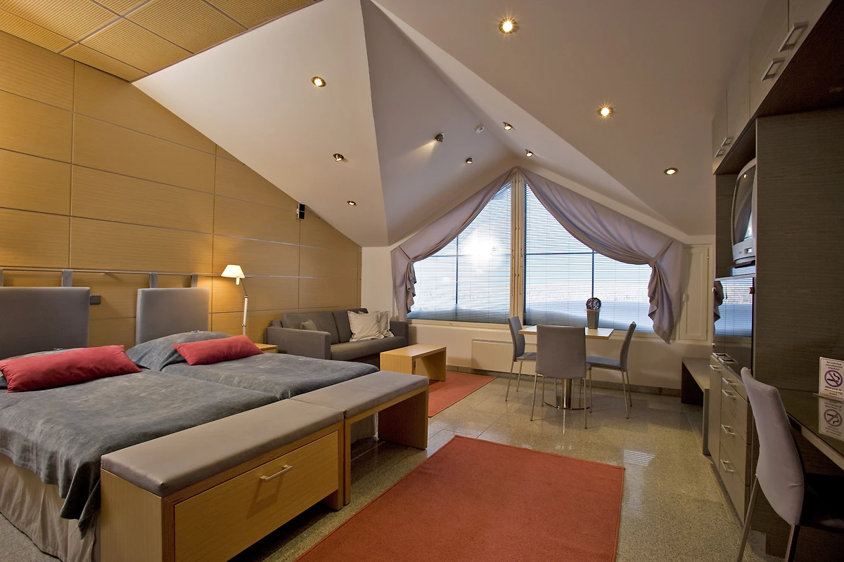 Le Club Scanditours Olos se compose d'un bâtiment principal avec 210 chambres et appartements à la décoration moderne et chaleureuse, entouré de chalets annexes au charme nordique et cocooning dispersés autour de l'hôtel. Toutes ces chambres offrent un confort haut de gamme, avec TV satellite, WiFi gratuit, salle de douche avec sèche-cheveux, et le luxe d'un sauna privatif, signature du bien-être nordique.
