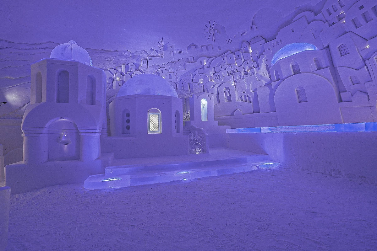 Jour 5 : MERCREDI : VILLAGE DE GLACE DE LAINIODépart en bus vers le village de glace de Lainio, pour laisser place à l'extraordinaire. Véritables maîtres de la sculpture sur neige et sur glace, les Finlandais transforment chaque hiver des milliers de tonnes de neige en un univers féerique. De cette expertise est né un site exceptionnel : un village entièrement sculpté, unique au monde. Lainio vous dévoile un hôtel de glace fascinant, un Ice Bar où l'on peut prendre un verre dans un verre de glace, un restaurant de glace où l'on peut dîner dans une atmosphère givrée et même une chapelle de glace. De nouveaux thèmes sont imaginés par des designers, une expérience surprenante et spectaculaire. Déjeuner dans le restaurant panoramique chauffé. Dîner à l'hôtel.