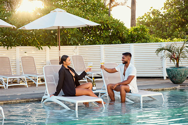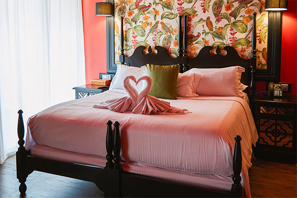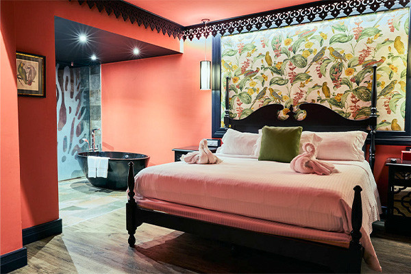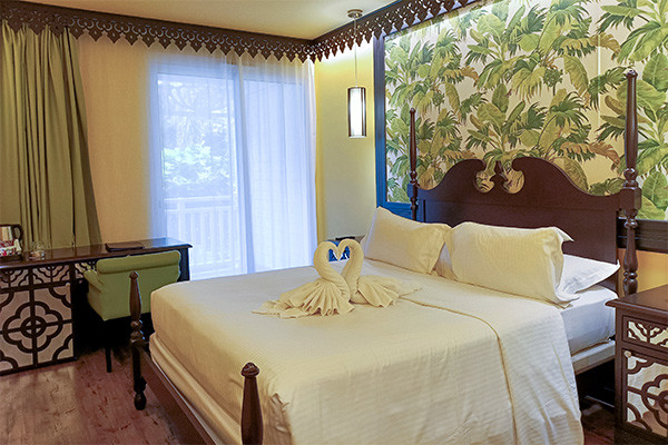 • Suite junior (44 m²) : 1 lit king size, espace salon avec canapé-lit double, machine à café Nespresso avec capsules de bienvenue, balcon vue jardin ou piscine. Capacité maximum : 2 adultes + 2 enfants.