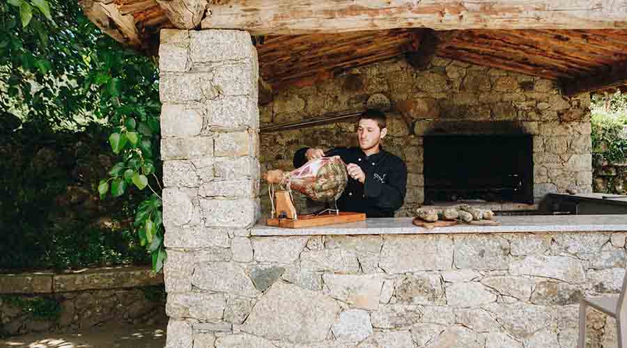 À seulement 3 kilomètres de Corte, la ferme auberge A Chjusellina se dévoile au creux d'un paysage corse préservé, entre prairies paisibles et montagnes majestueuses. Facilement accessible, cette adresse authentique vous plonge au coeur d'une exploitation familiale où l'élevage porcin et bovin façonne une charcuterie AOP d'exception.