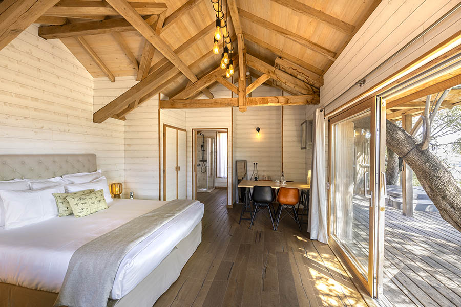 Une bâtisse principale aux élégantes courbes "le Moulin des Oliviers" et la cabane dans les arbres pour vous abriter.
