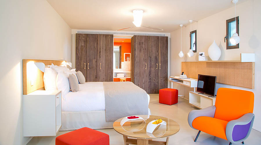 17 chambres et 3 suites, entre 26 et 60 m², toutes dotées de terrasses pourvue de tables et chaises à