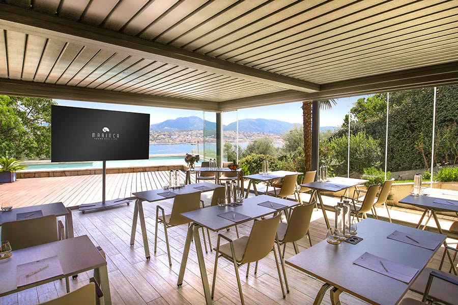 L'hôtel célèbre l'art de la table à travers deux expériences culinaires d'exception. "La Paillote", restaurant en bord de plage ouvert chaque jour pour le déjeuner et le dîner, invite à savourer une cuisine méditerranéenne aux parfums délicats, dans un décor marin où le murmure des vagues accompagne chaque plat. Le soir venu, "La Verrière", restaurant gastronomique auréolé d'une étoile au Guide Michelin, déploie un univers plus intime. Le chef Romain Masset y signe une cuisine créative et raffinée, inspirée des saveurs méditerranéennes et sublimée par des produits d'exception issus de l'île, qu'il magnifie avec une élégance et une précision admirables.