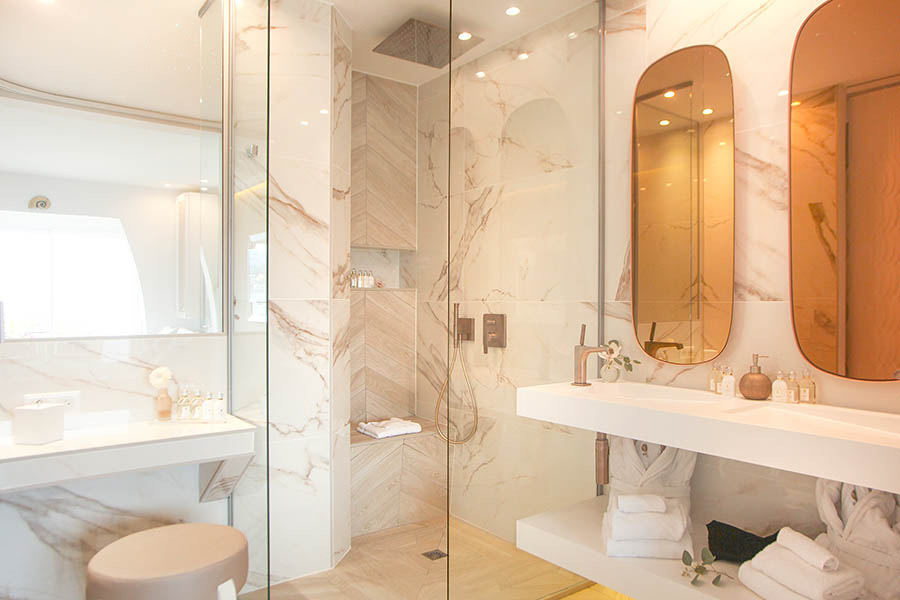D'une superficie allant de 24 à 27 m² les chambres "Chic Supérieure" et "Luxe" accueillent jusqu'à 2 adultes et 1 enfant. Les chambres "Luxe Terrasse", "Chic" et suite "Balnéo" accueillent jusqu'à 2 adultes et 1 bébé. Les suites "Junior" et "Famille" peuvent loger 2 adultes + 2 enfants. Les suites "Duplex Piscine", "bains à remous" et "Penthouse" accueillent jusqu'à 4 adultes. Toutes les suites disposent de : dressing, coin salon séparé, produits d'accueil Clarins. Les bébés comptent dans l'occupation, et leur séjour est facturé dès la réservation.