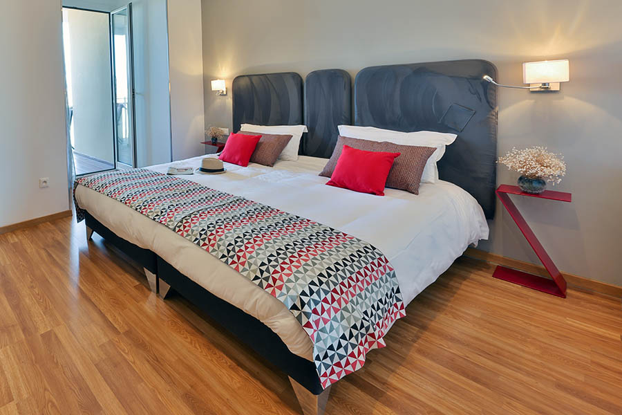 L'hôtel propose 50 chambres confortables et modernes, chacune pensée pour offrir une parenthèse de bien-être au cœur de Calvi. Selon la catégorie choisie, les voyageurs peuvent profiter d'un lit double ou de lits jumeaux dans les chambres Standard, Standard avec balcon, Vue Piscine ou Vue Mer, tandis que les chambres triples ou quadruples accueillent les familles grâce à des configurations adaptées mêlant lit double et lits simples. Toutes les chambres disposent d'une salle d'eau privative, équipée d'une douche fonctionnelle et de toilettes, et de prestations indispensables telles que la climatisation, la télévision et le wifi gratuit. Les chambres avec balcon — qu'elles donnent sur la ruelle, la piscine ou la Méditerranée — invitent à savourer l'extérieur et, pour les catégories Vue Mer, à profiter de panoramas exceptionnels dès le réveil. Les chambres familiales, également disponibles en version PMR, garantissent accessibilité et confort pour un séjour en toute sérénité.