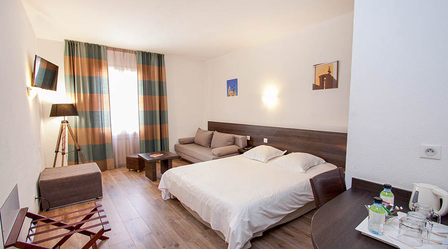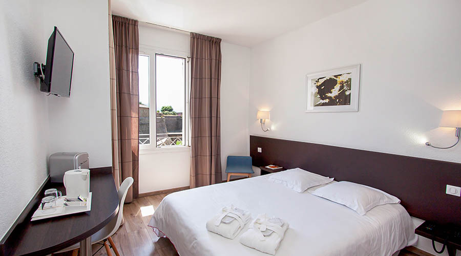 Bon à savoir : Lit bébé 0-1 an révolu gratuit sur réservation. Bar et restaurant disponible sur place : Bar bistronomique ouvert en haute saison du lundi au samedi de 15h00 à 23h00 / en basse et moyenne saison du mardi au samedi de 15h00 à 23h00. Wifi gratuit. Une bagagerie sécurisée ainsi qu'une salle de courtoisie sont disponibles afin de vous rafraichir avant / après votre séjour. Établissement (notamment en chambre Confort) accessible aux Personnes à Mobilité Réduite (PMR).