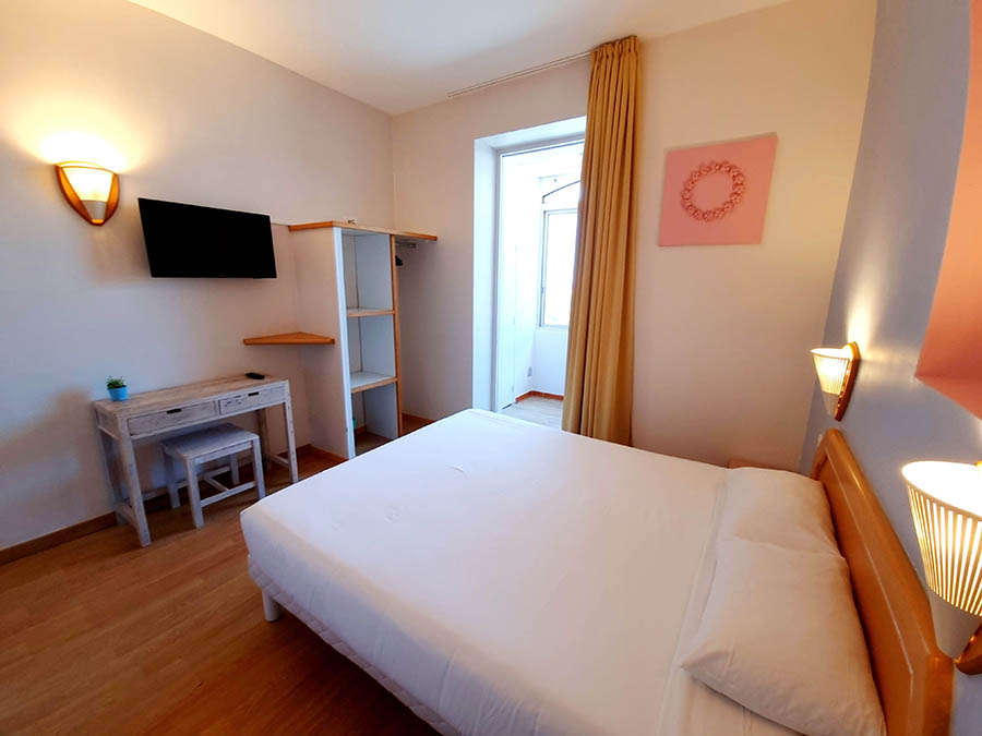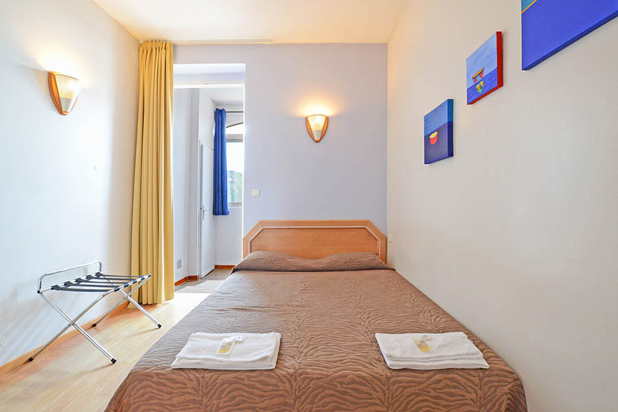 Les chambres de l'hôtel se déclinent en Confort, Triple Confort, Quadruple Confort et Supérieure, toutes situées au 1er ou 2ème étage avec vue sur la mer, la Citadelle ou le phare de la Revellata.