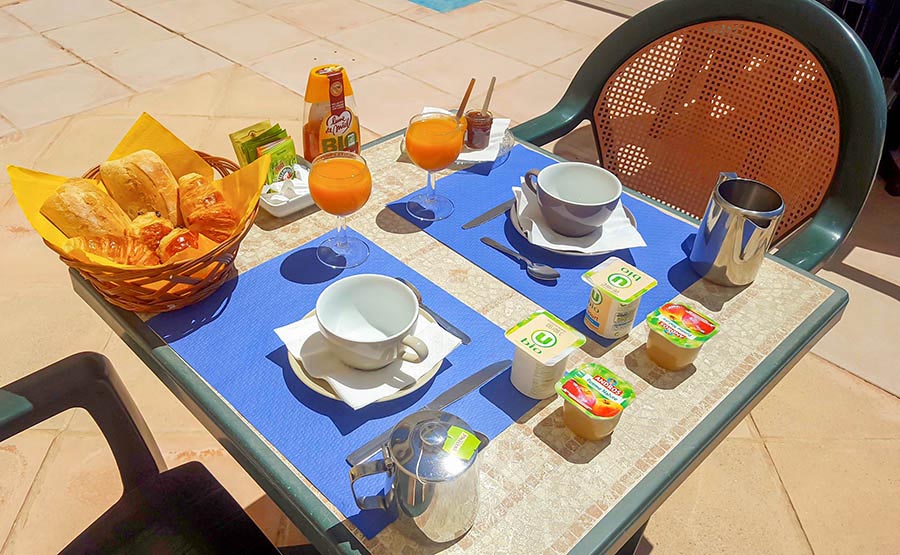 Commencez la journée avec un petit-déjeuner continental, servi en salle ou au bord de la piscine aux beaux jours. Le bar de la réception reste ouvert en journée pour vos boissons et rafraîchissements.