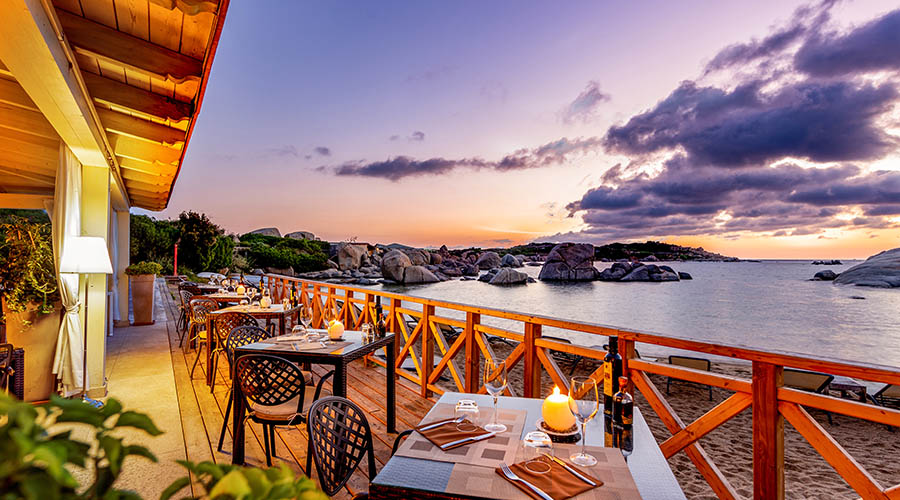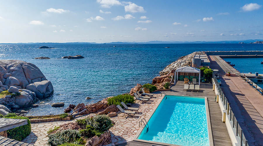 Une plage de sable blond à quelques pas, aménagée de chaises-longues et d'espaces ombragés. L'île étant une Réserve Marine, les parasols y sont interdits. Petite piscine extérieure aménagée de chaises longues, près du centre spa. Massages et soins de beauté en supplément. Sauna, piscine intérieure thalassothérapie, et salle de fitness à disposition. Location de voiturettes électriques et de bateaux. 2 courts de tennis sur l'île (avec participation). Presque en face, à quelques minutes de navigation, le golf de Sperone. Plongée sous-marine avec des fonds superbes, dont "Mérouville"...