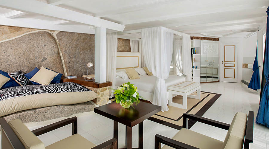 Toutes personnalisées, ses 48 chambres et sa suite se fondent dans le paysage, arborent des tonalités blanche, beige et bleue, et vous proposent une vue imprenable sur la mer. Les chambres Standard Classic, Standard Vue Mer, Privilège Classic, Privilège Vue Mer, Privilège Pieds dans l'eau (avec balcon sur la mer), Junior Suite et la Grande Suite sont toutes pourvues de : climatisation, télévision, téléphone, minibar, coffre-fort et accès Wifi. Toutes possèdent un balcon individuel donnant sur les eaux limpides des Lavezzi. 3ème lit dès le confort Privilège. Le lit bébé compte dans l'occupation. Communicantes en Privilège, nous consulter. Pour votre sécurité, un médecin sur place 24h/24 du 01/06 au 15/09 et un défibrillateur.