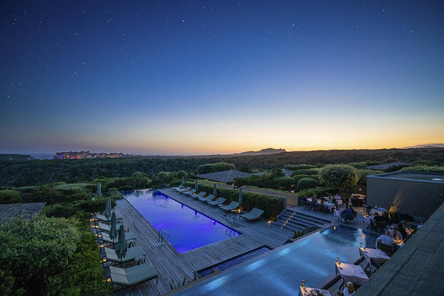 Face à la citadelle de Bonifacio et à seulement 800 mètres du port de plaisance, l'hôtel se dévoile au cœur du maquis corse. Un écrin confidentiel où nature préservée, luxe discret et sérénité se conjuguent pour offrir une expérience hors du commun.