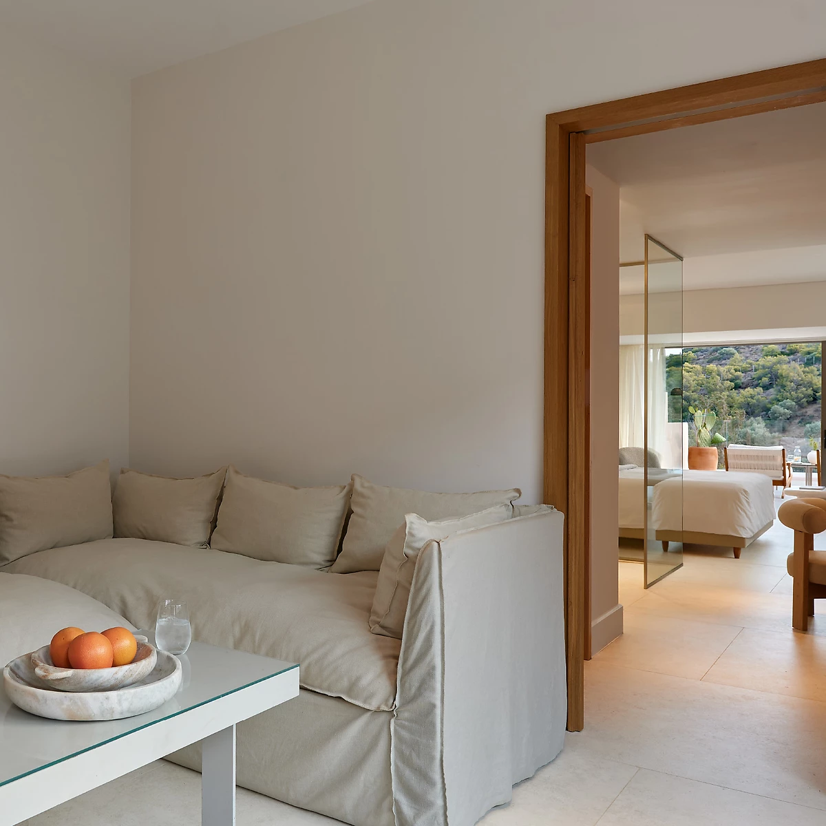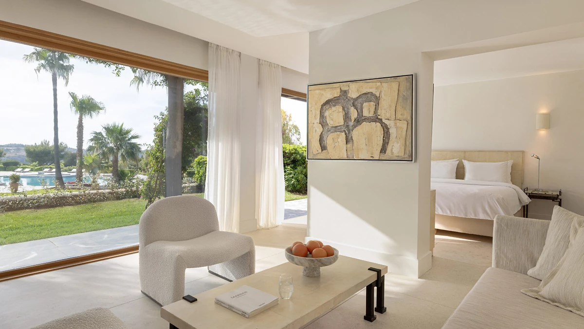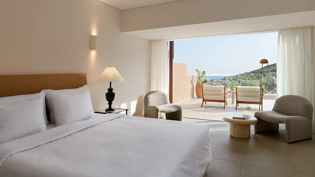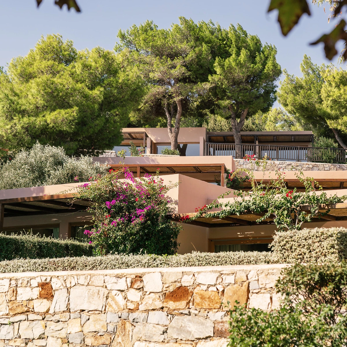 Le Cape Sounio, a Grecotel Resort to Live propose 139 chambres réparties dans des bungalows et 24 villas disséminées sur une colline. Chaque bungalow regroupe plusieurs chambres et chaque villa plusieurs suites. Toutes arborent un style contemporain avec des tons chauds et disposent de climatisation. La plupart des villas disposent en plus, au minimum, d'un salon séparé, d'une piscine privée, ont vue sur le jardin, la mer ou le temple, et bénéficient de services complémentaires.
