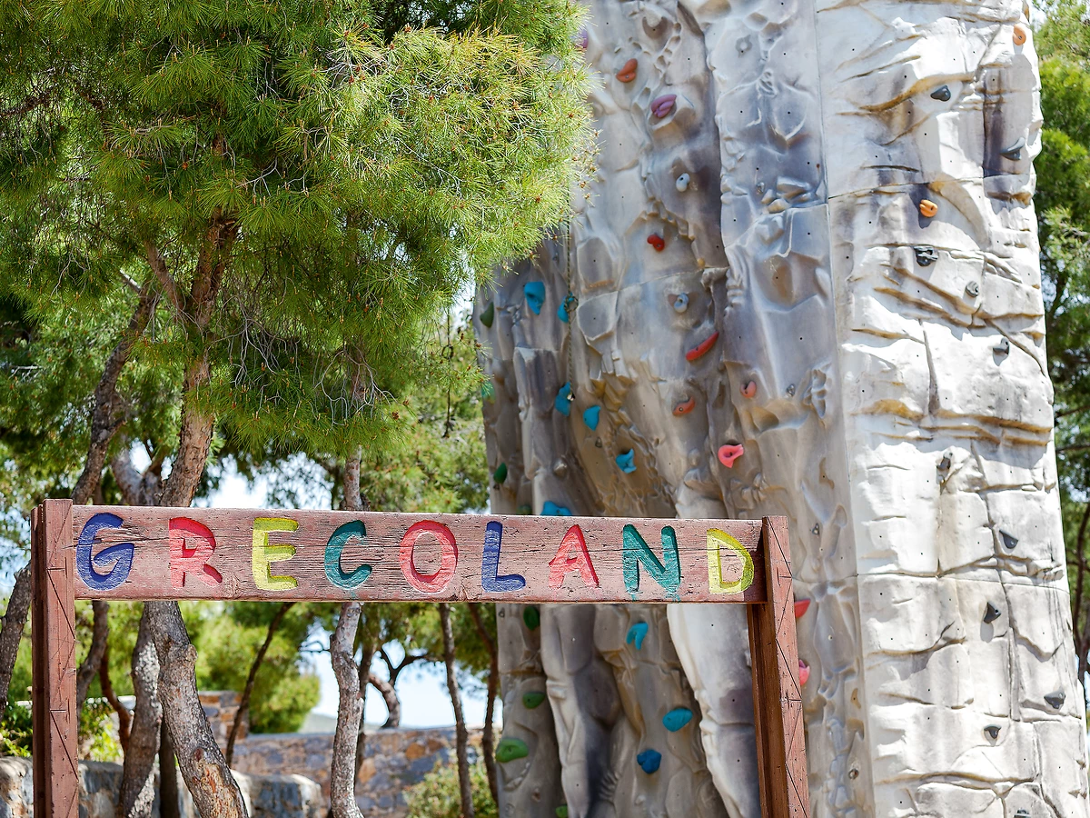 Mur d'escalade, terrains de jeux en intérieur et de plein-air, piscine pour enfants. Clubs GrecoKids (4 à 6 ans), GrecoJuniors (7 à 12 ans) et Grecoland Teens (13 à 17 ans, uniquement en haute saison, l'été, en fonction du nombre de participants) ouverts le matin et l'après-midi, 6 jours par semaine.