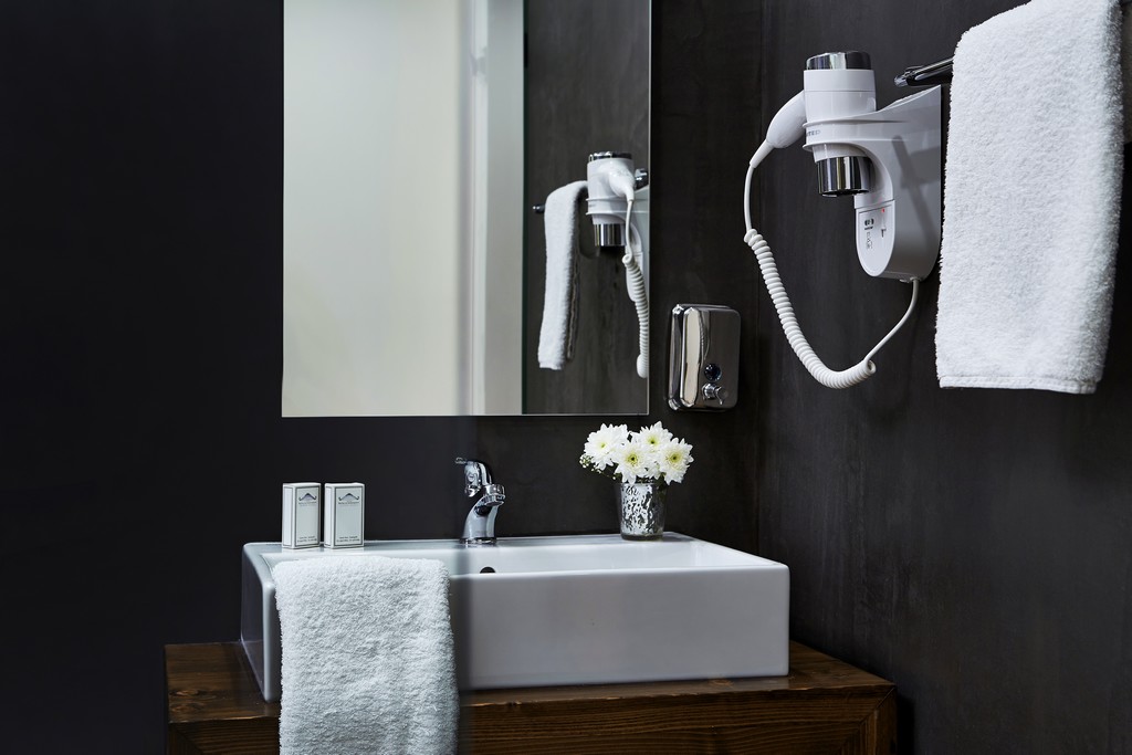 • salle de bains avec baignoire ou douche et sèche-cheveux.