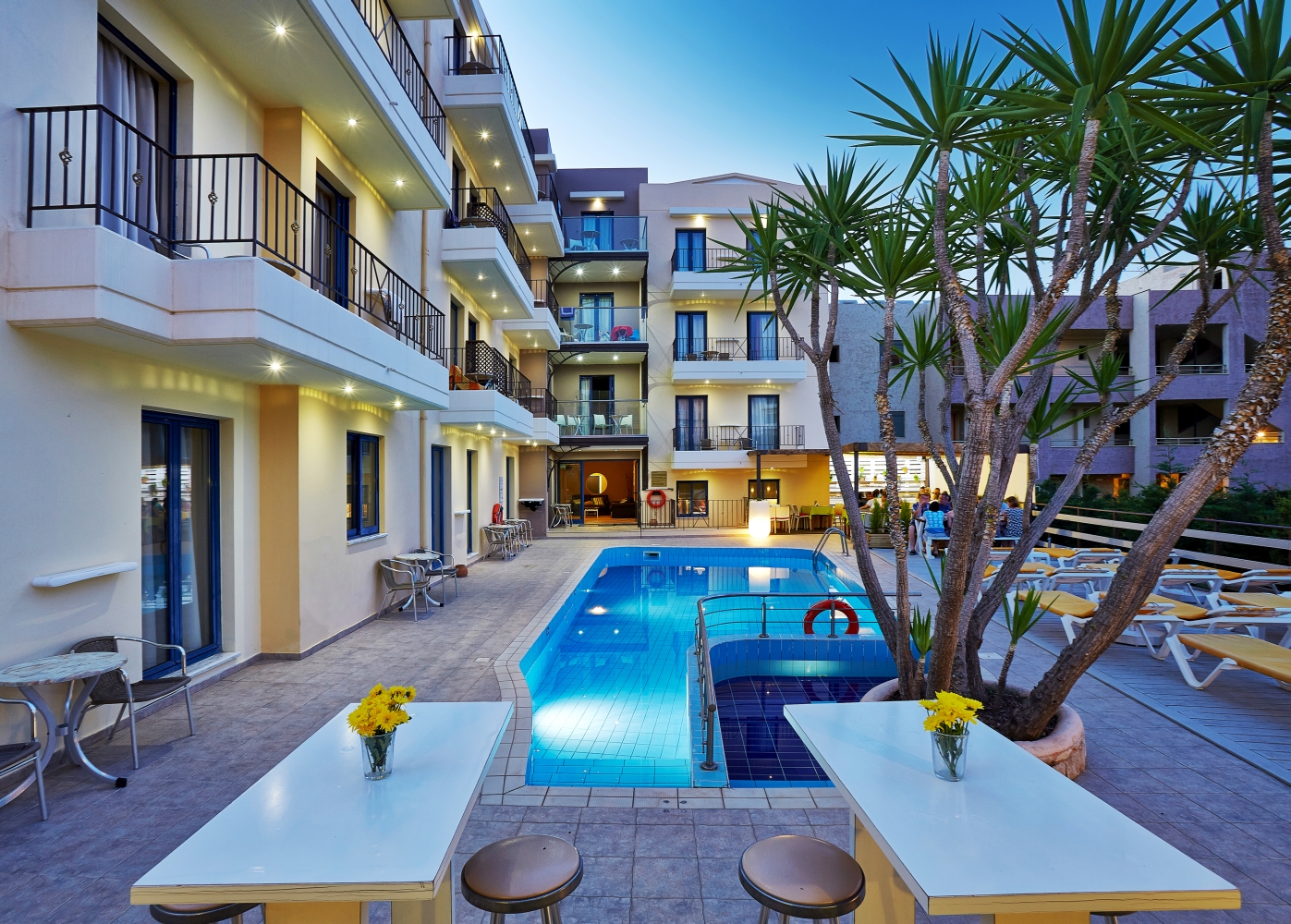 Cet hôtel de charme parfait pour une clientèle jeune vous accueille dans un cadre agréable et une ambiance chaleureuse et décontractée. Il est idéalement situé à 3-4 mn de marche de la plage et du centre animé de la station d'Hersonissos.